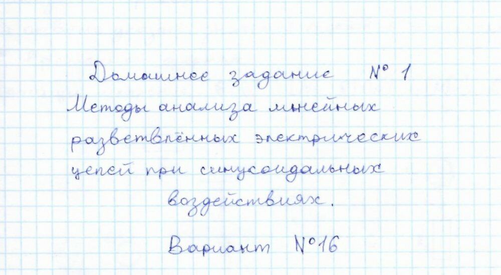 ДЗ 1: Методы анализа линейных разветвлённых электрических цепей при синусоидальных воздействиях вариант 16