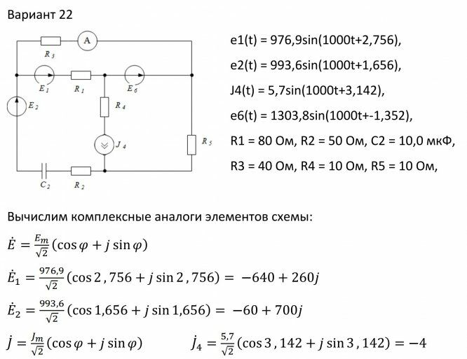 ДЗ 1: Методы анализа линейных разветвлённых электрических цепей при синусоидальных воздействиях вариант 22