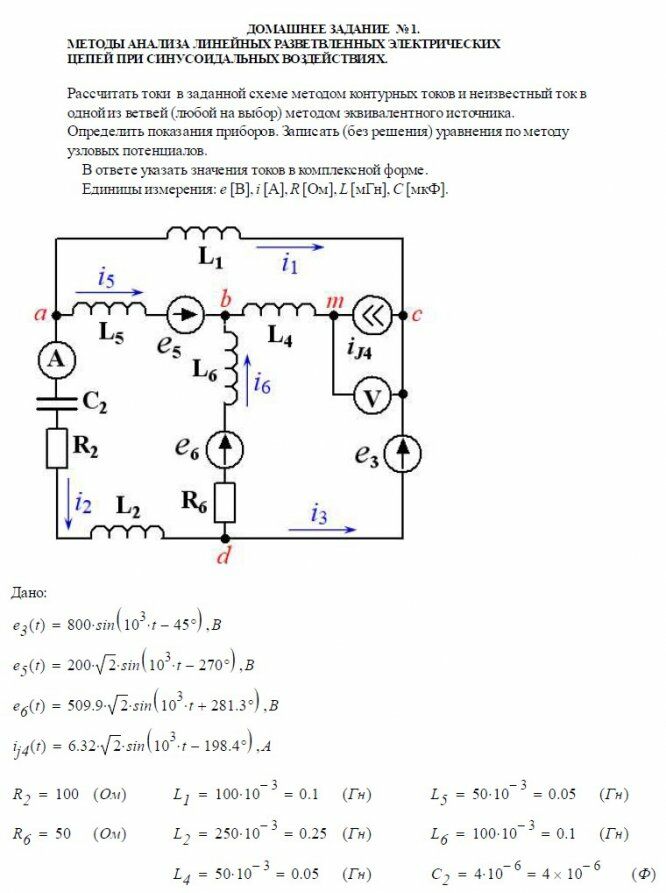 ДЗ 1: Методы анализа линейных разветвлённых электрических цепей при синусоидальных воздействиях вариант 5