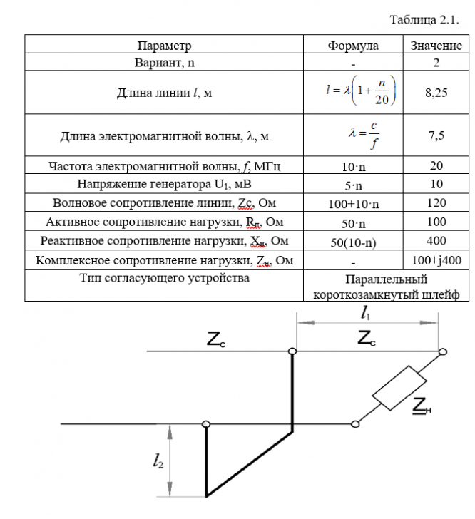 Линия без потерь длиной с волновым сопротивлением соединяет генератор и нагрузку .