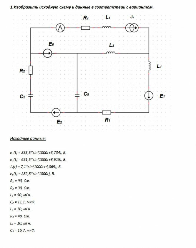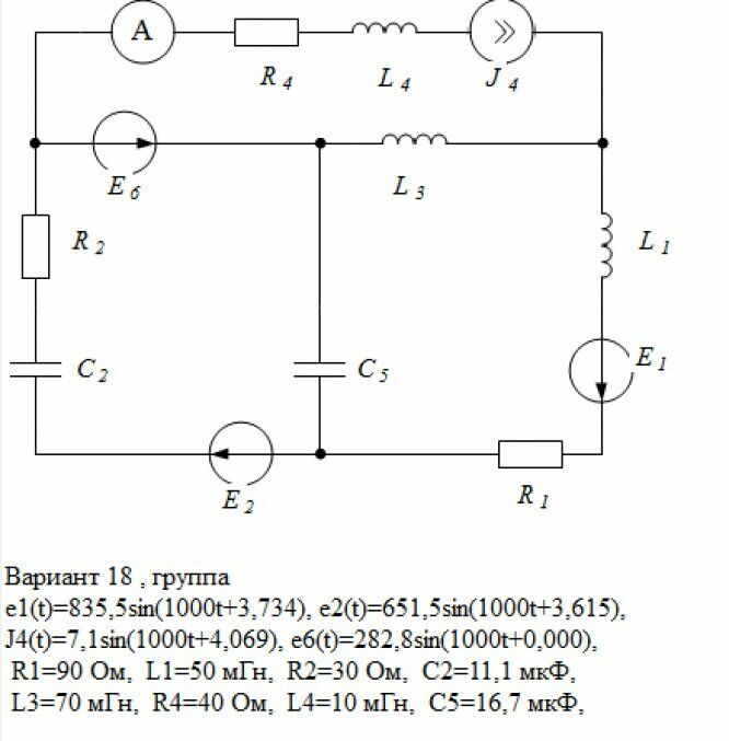 ДЗ 1: Методы анализа линейных разветвлённых электрических цепей при синусоидальных воздействиях вариант 18