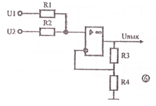 1. Перечертить в тетрадь схему включения идеального операционного усилителя (ОУ), выбранную по рисунку 7.1 в соответствии с последней цифрой номера студенческого билета.
