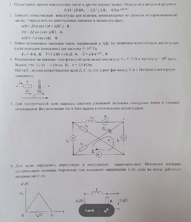 1. Представить данное комплексное число в других формах записи. Определить модуль и аргумент
