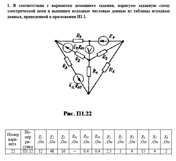 ДЗ 1: Расчет линейных цепей постоянного тока вариант 22