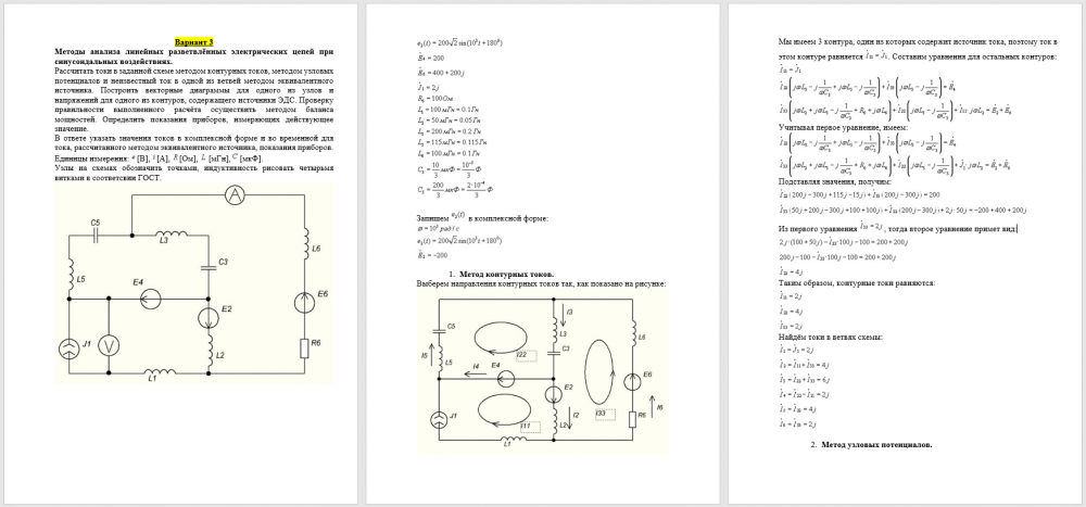 ДЗ 1, 2: Вариант 3 - Методы анализа линейных разветвлённых электрических цепей при синусоидальных воздействиях вариант 3