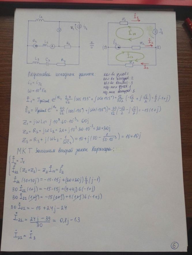 ДЗ 1, 2: Вариант 6 - Методы анализа линейных разветвлённых электрических цепей при синусоидальных воздействиях вариант 6