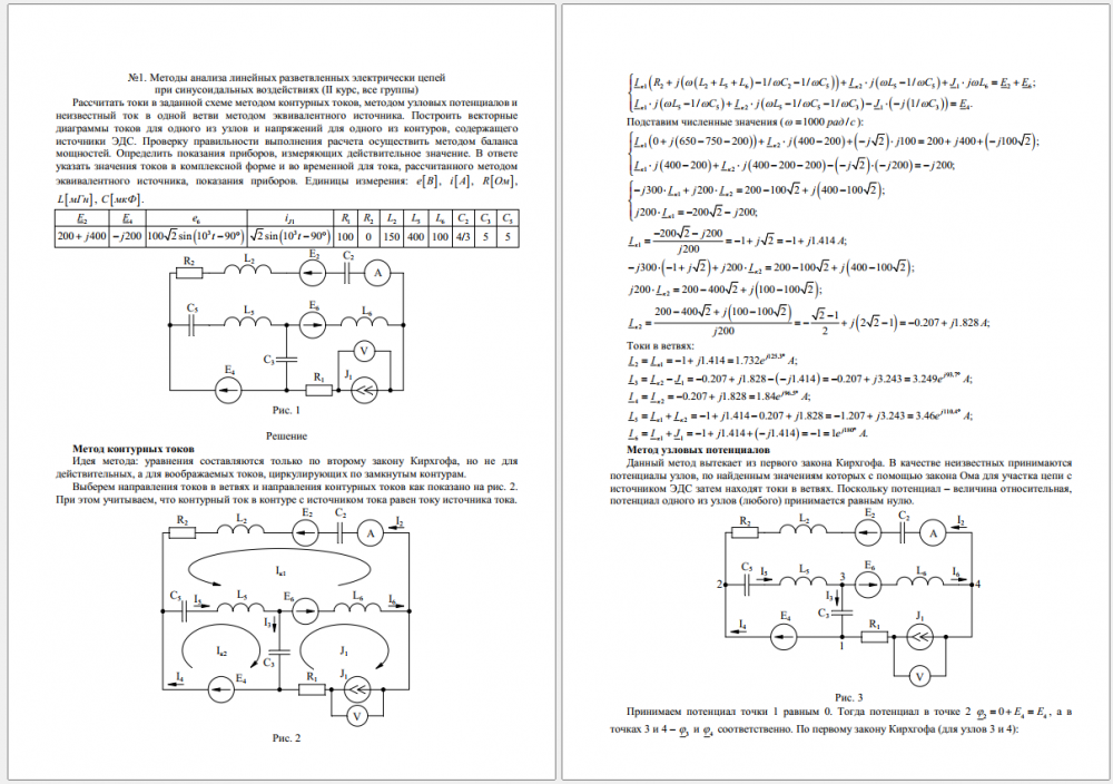 ДЗ 1, 2: Методы анализа линейных разветвлённых электрических цепей при синусоидальных воздействиях