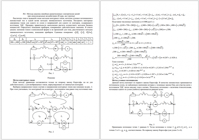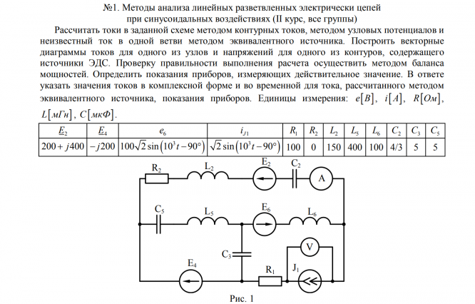 Главная » Учебные материалы » Электротехника (ЭлТех) » Домашние задания » МГТУ им. Н.Э.Баумана » Несколько классов/семестров » Номер 1 » Методы анализа линейных разветвлённых электрических цепей при синусоидальных воздействиях