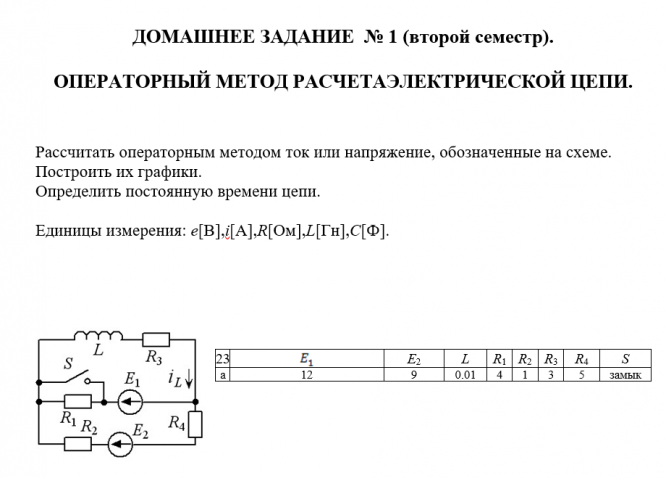 ДЗ 1: Операторный метод расчета электрической цепи вариант 23