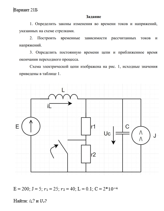 ДЗ 2: Расчет переходных процессов в электрических цепях во временной области вариант 21, 21Б