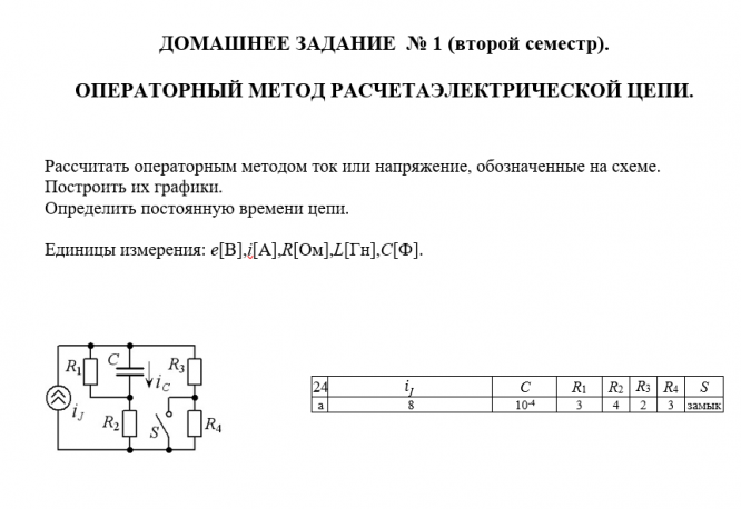 ДЗ 1: Операторный метод расчета электрической цепи вариант 24, 24а