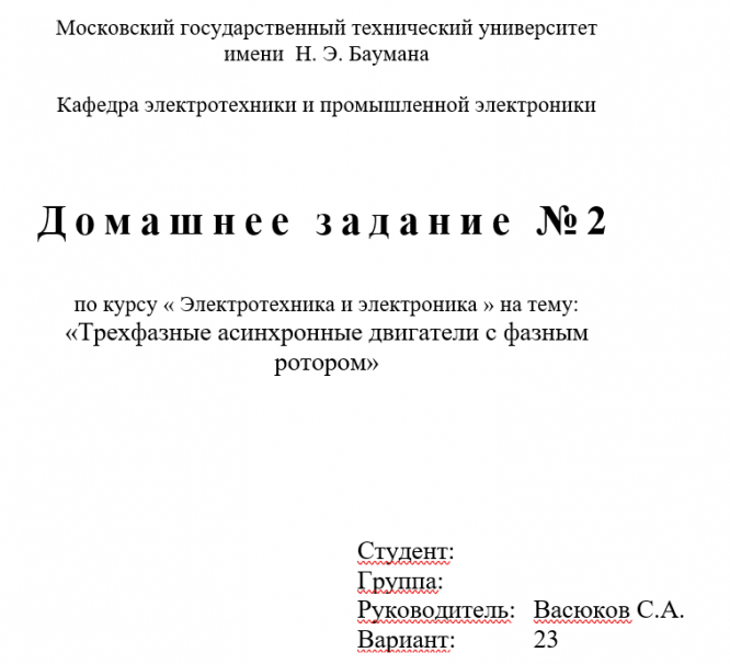 ДЗ 2: Трехфазные асинхронные двигатели с фазным ротором вариант 23