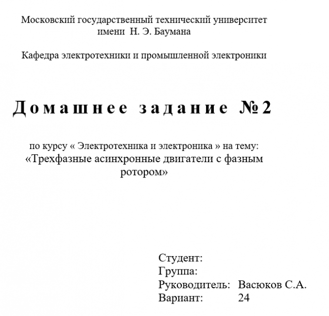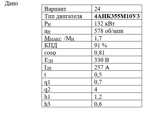 ДЗ 2: Трехфазные асинхронные двигатели с фазным ротором вариант 24