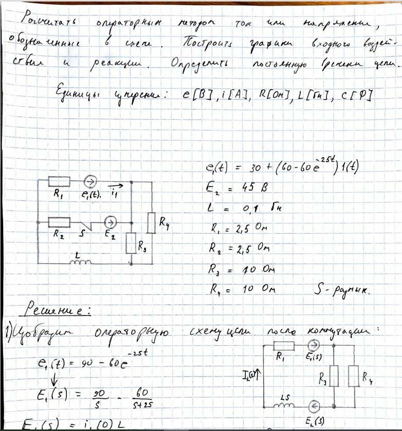 Для студентов МГТУ им. Н.Э.Баумана по предмету Электротехника (ЭлТех)Операторный метод расчет электрической цепиОператорный метод расчет электрической цепи