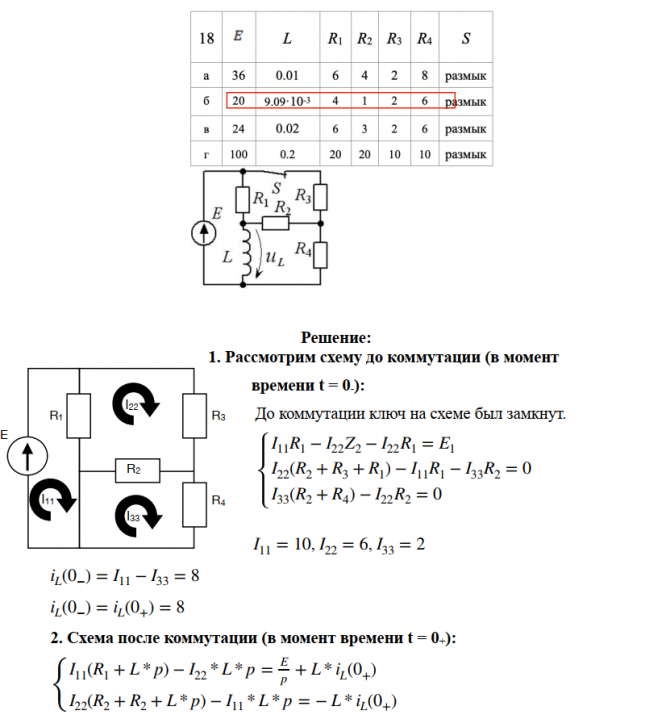 ДЗ 1: Операторный метод расчета электрической цепи вариант 18, 18б