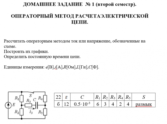 ДЗ 1: Операторный метод расчета электрической цепи вариант 22 вариант 22, 22б