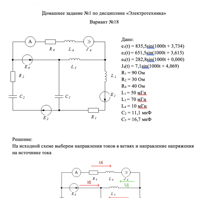 ДЗ 1: Расчет линейных электрических цепей вариант 18