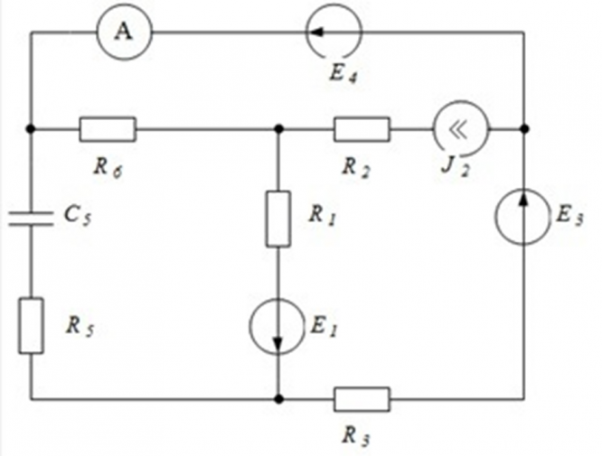 Составить математическую модель цепи, заданной схемой. Получить систему уравнений для расчета комплексных токов в схеме одним из следующих методов: