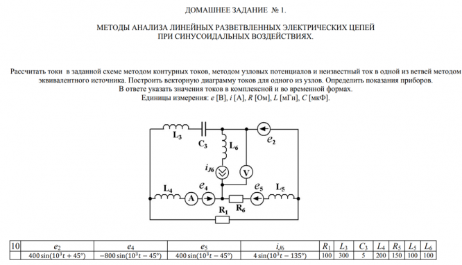 ДЗ 1: Методы анализа линейных разветвленных электрических цепей при синусоидальных воздействиях вариант 10