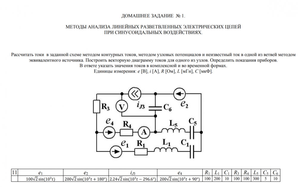 ДЗ 1: Методы анализа линейных разветвленных электрических цепей при синусоидальных воздействиях вариант 11