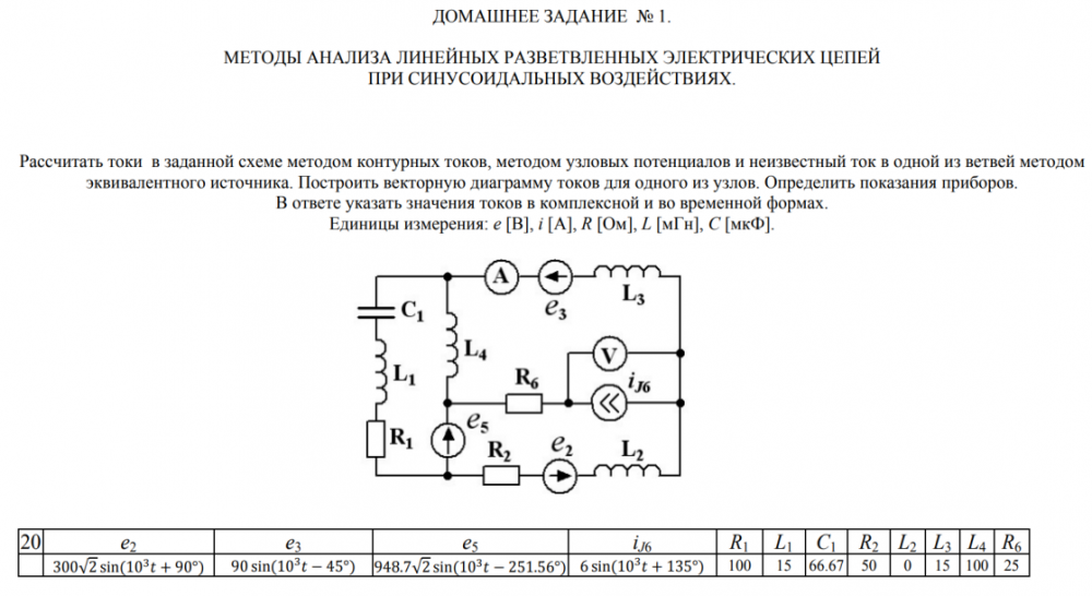 ДЗ 1: Методы анализа линейных разветвленных электрических цепей при синусоидальных воздействиях вариант 20
