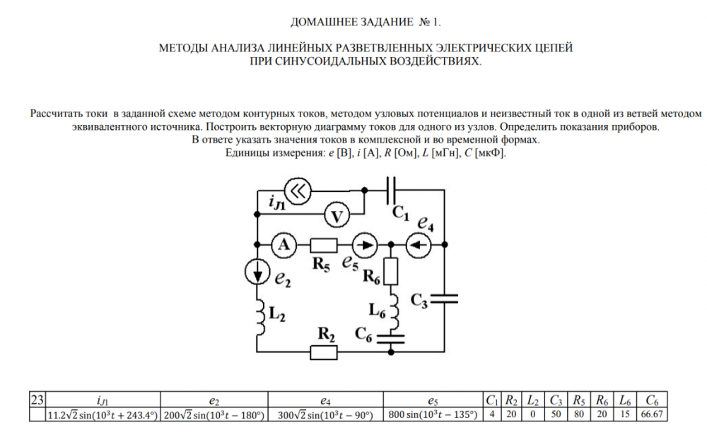 ДЗ 1: Методы анализа линейных разветвленных электрических цепей при синусоидальных воздействиях вариант 23