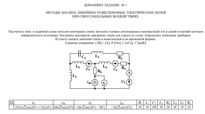 ДЗ 1: Методы анализа линейных разветвленных электрических цепей при синусоидальных воздействиях вариант 26