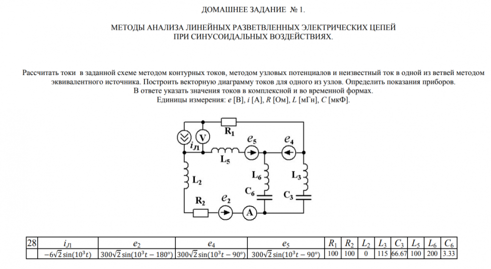 ДЗ 1: Методы анализа линейных разветвленных электрических цепей при синусоидальных воздействиях вариант 28