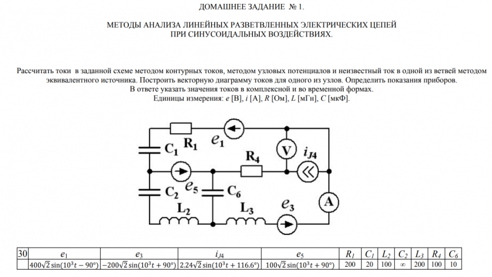 ДЗ 1: Методы анализа линейных разветвленных электрических цепей при синусоидальных воздействиях вариант 30