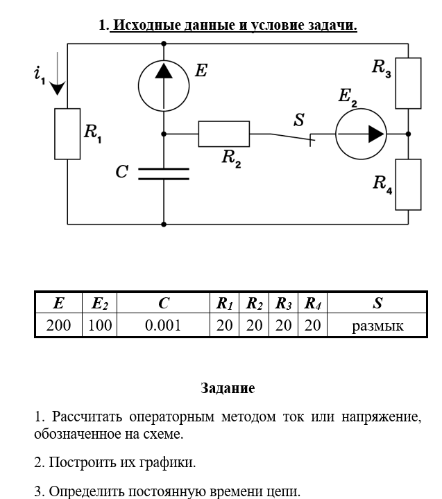 ДЗ 1: Операторный метод расчета электрической цепи вариант 4, 4г
