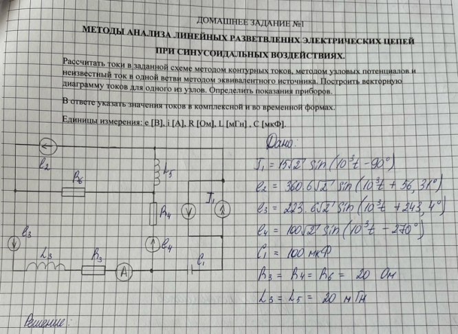 ДЗ1 по электротехнике: "Методы анализа линейных разветвленных электрических цепей при синусоидальных воздействиях". Вариант 2