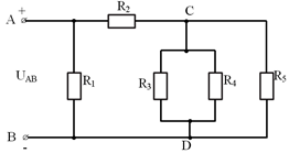Цепь постоянного тока содержит резисторы, соединенные смешано. Схема цепи с указанием резисторов приведена на рисунке 1. Всюду индекс тока или напряжения совпадает с индексом резистора, по которому проходит этот ток или на котором действует это напряжение. Например, через резистор R3 проходит ток I3,и на нем действует напряжение U3.