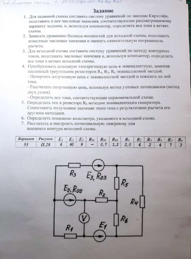 Главная » Учебные материалы » Электротехника (ЭлТех) » Домашние задания » МГТУ им. Н.Э.Баумана » Несколько классов/семестров » Вариант 55 » Домашнее задание. Вариант 55 (Расчёт электрических цепей постоянного тока»)