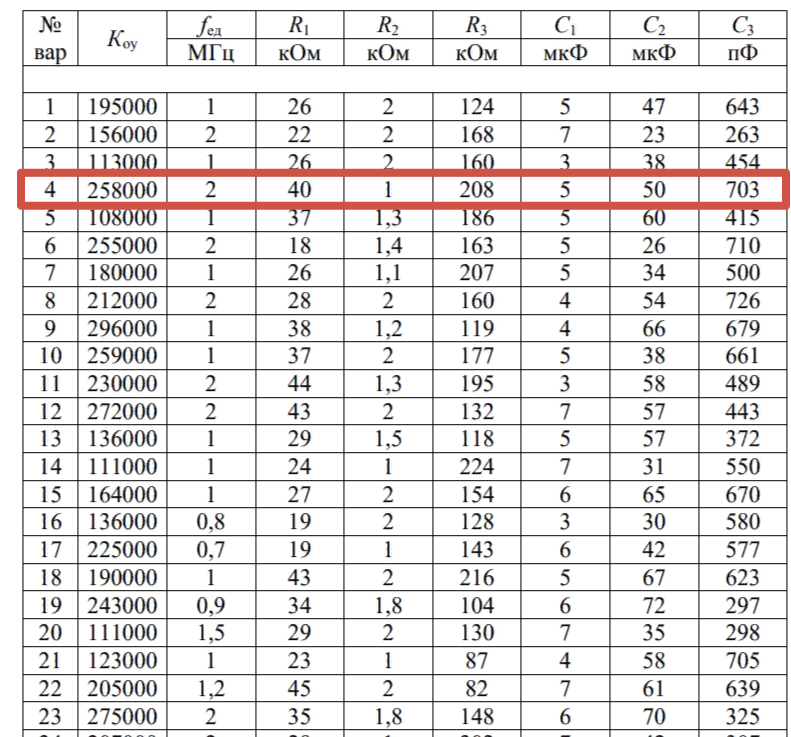 ДЗ 1: Анализ активного фильтра на базе операционного усилителя вариант 4