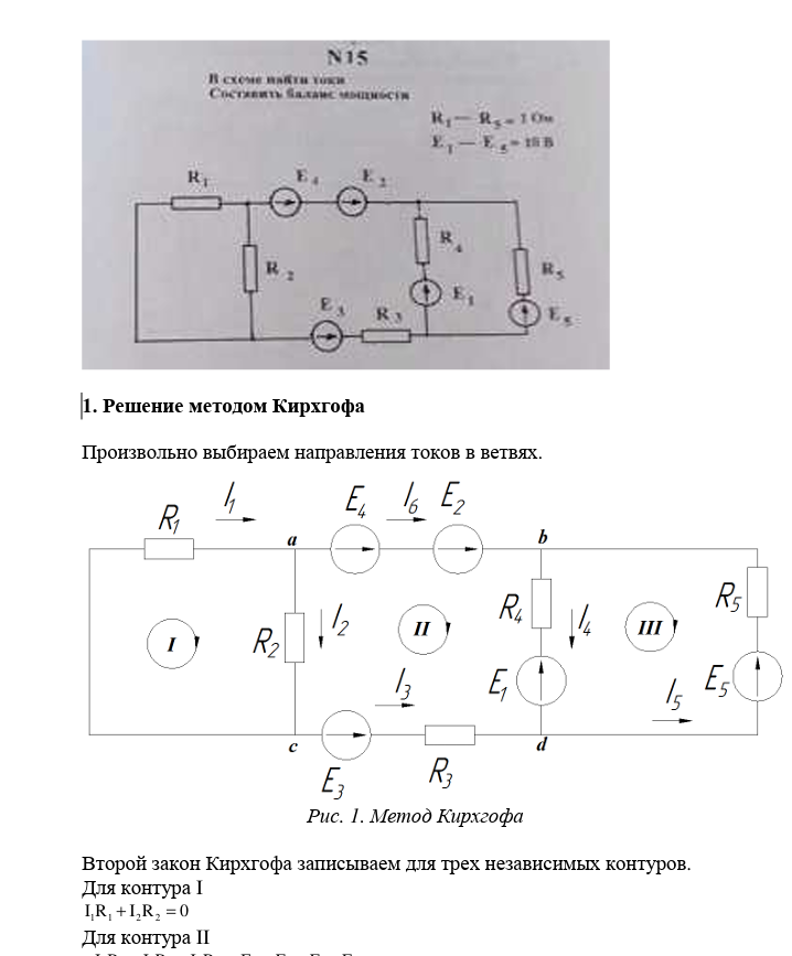 ДЗ 1: Расчет сложных линейных цепей постоянного тока вариант 15