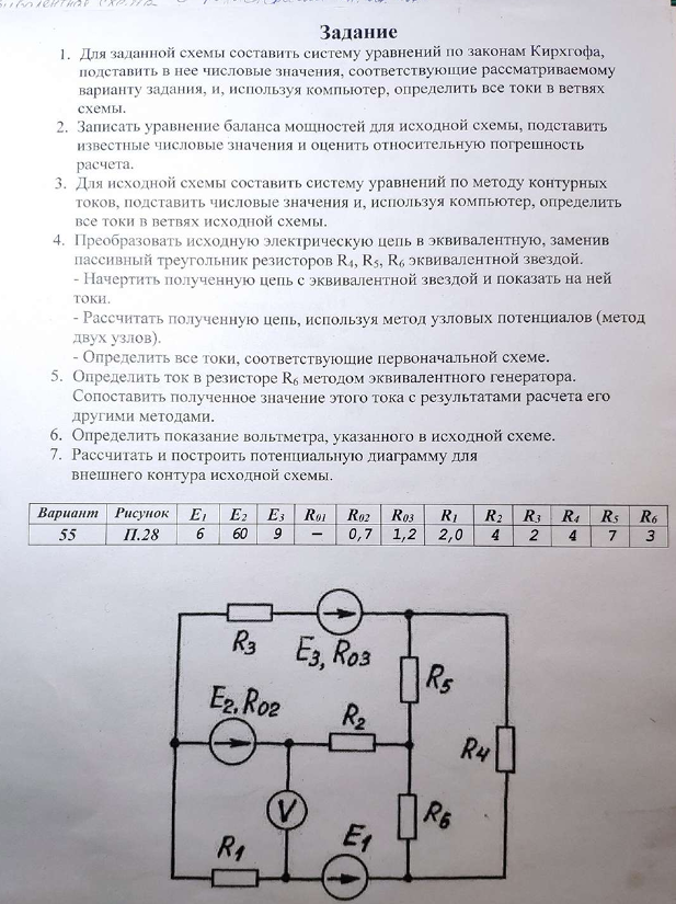 ДЗ 1: Расчет сложных линейных цепей постоянного тока вариант 55
