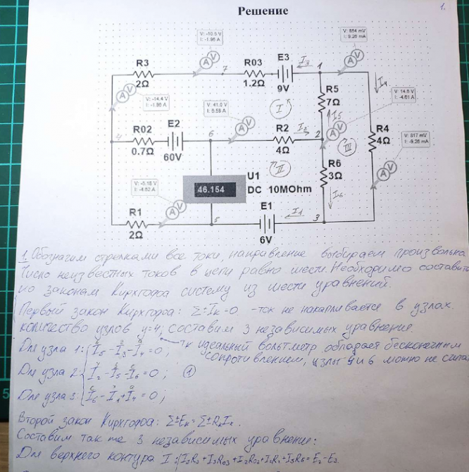 2. Определить показание вольтметра, указанного в исходной схеме.
