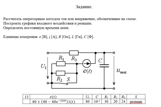 ДЗ: Расчёт операторным методом тока или напряжения, обозначенные на схеме. вариант 13
