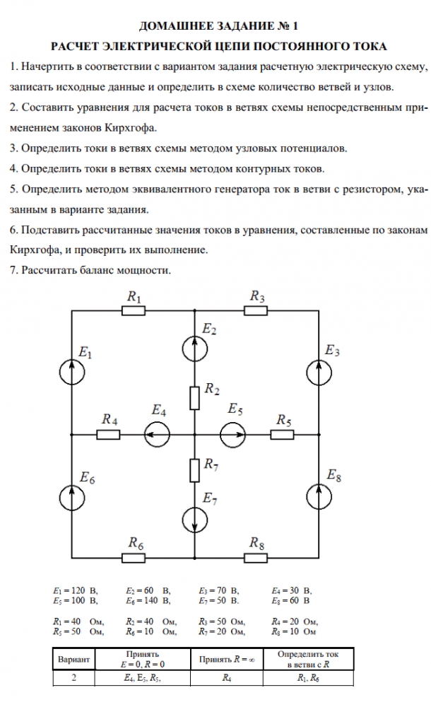 ДЗ 1: Расчет электрической цепи постоянного тока вариант 2