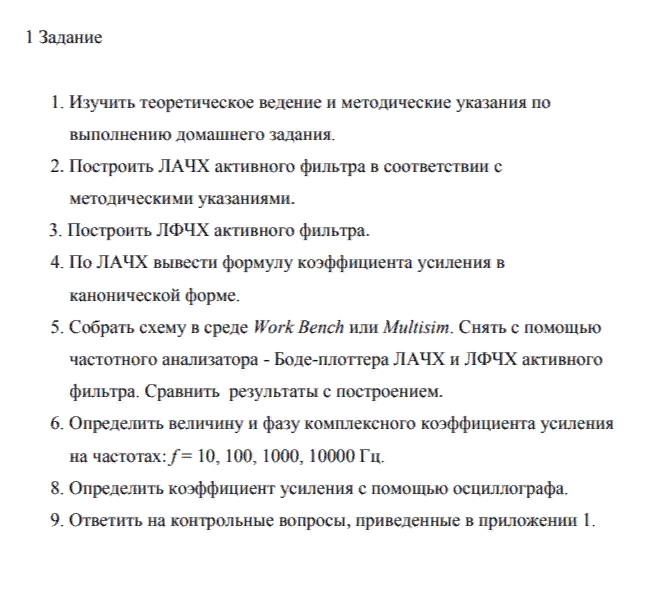 Для студентов МГТУ им. Н.Э.Баумана по предмету Электротехника (ЭлТех)Анализ активного фильтра на базе операционного усилителяАнализ активного фильтра на базе операционного усилителя