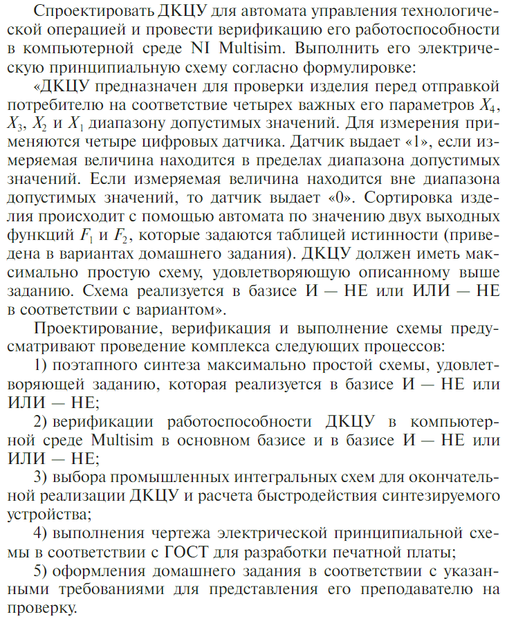 ДЗ1 на тему: "Проектирование дискретного комбинационного устройства на интегральных микросхемах", принято Васильевым В. В. В исходном условии есть опечатки, в условии ДЗ они исправлены.