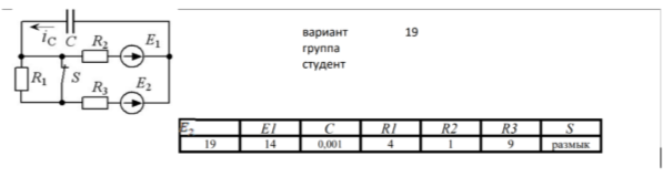 ДЗ 1: Операторный метод расчета электрической цепи вариант 19