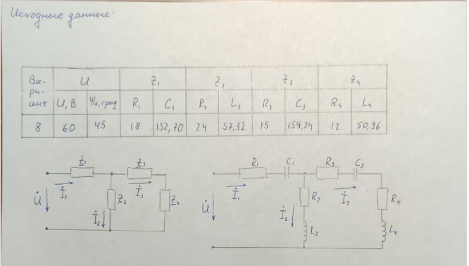 ДЗ 2: Расчет линейных цепей синусоидального тока вариант 8