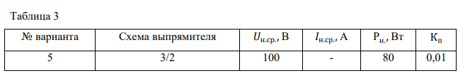 ДЗ: Для заданных в табл. 3 схемы выпрямления, выпрямленного напряжения вариант 5