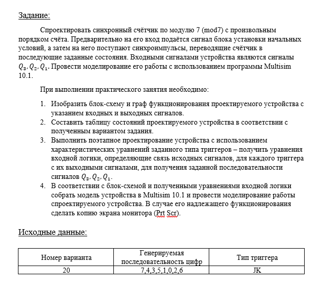 ДЗ 2: Проветирование синхронного счетчика с произвольным порядком счета вариант 20