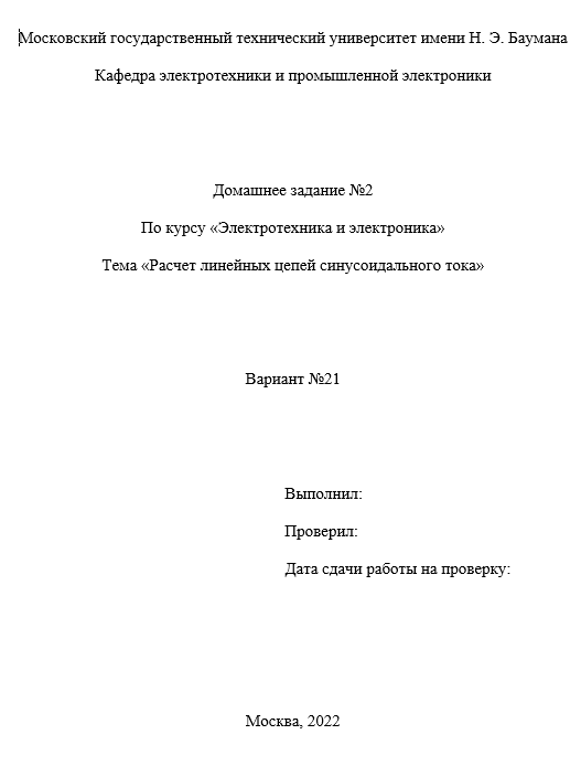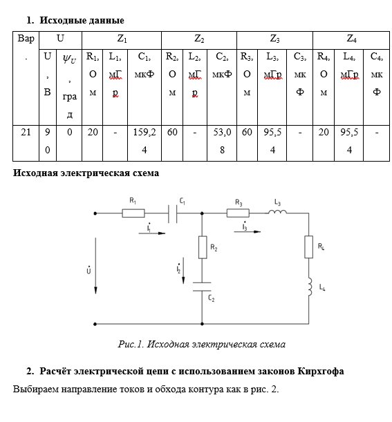 ДЗ 2: Расчет линейных цепей синусоидального тока вариант 21