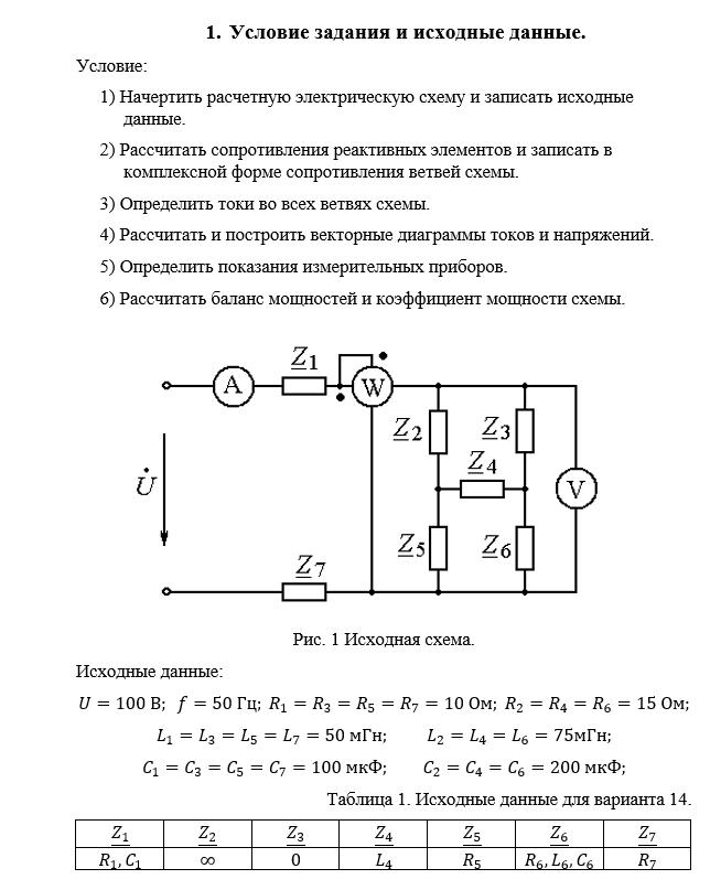 ДЗ 2: Расчет электрической цепи переменного тока вариант 14