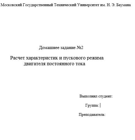 Для студентов МГТУ им. Н.Э.Баумана по предмету Электротехника (ЭлТех)Расчет характеристик и пускового режима двигателя постоянного токаРасчет характеристик и пускового режима двигателя постоянного тока