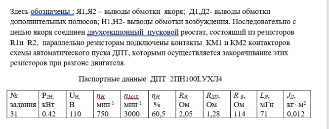 ДЗ 2: Расчет характеристик и пускового режима двигателя постоянного тока вариант 31