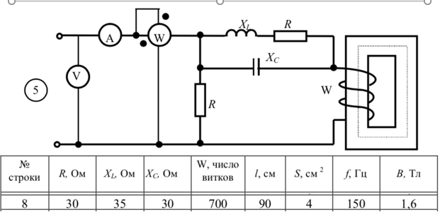 Задана электрическая цепь (рис. 4.3), содержащая катушку с ферромагнитным сердечником. Индукция изменяется по синусоидальному закону. Кривая намагничивания задана в табл. 4.3. Исходные данные приведены в табл. 4.3.